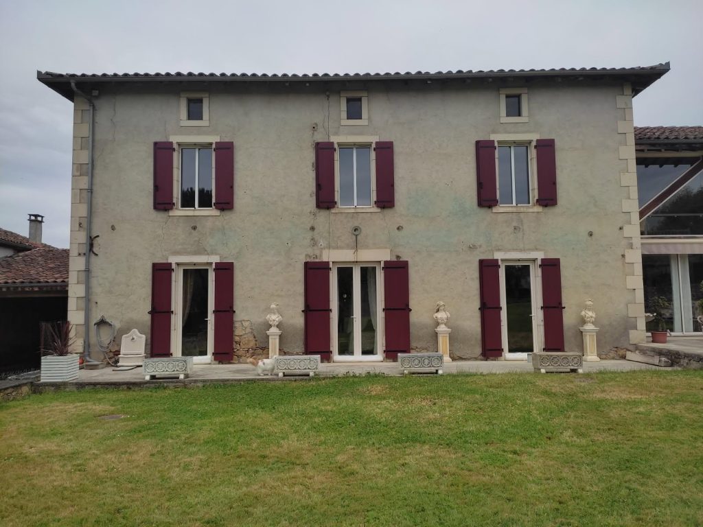 Les volets composites Design Compo offrent ici un rendu chaleureux, parfaitement en harmonie avec les encadrements clairs des ouvertures et le style régional du Sud-Ouest.