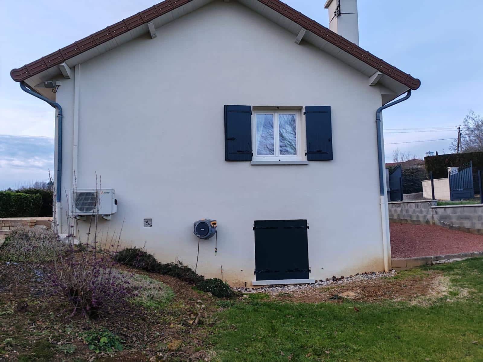 Grâce à une pose minutieuse et à un ajustement sur-mesure, l’ensemble de la maison a gagné en cachet et en cohérence. Le contraste entre les murs clairs et les volets anthracite met parfaitement en valeur chaque façade.