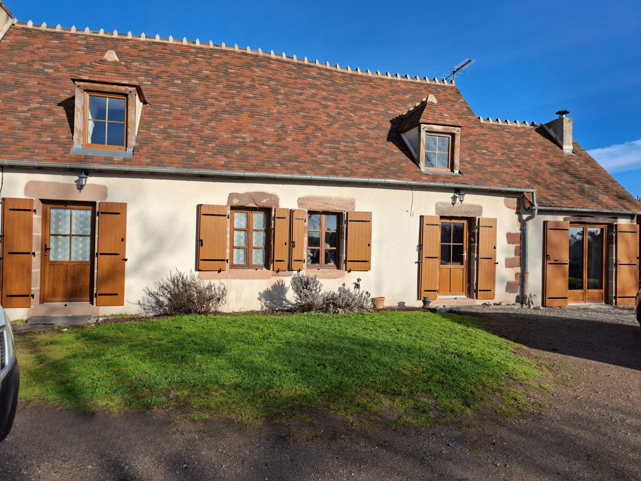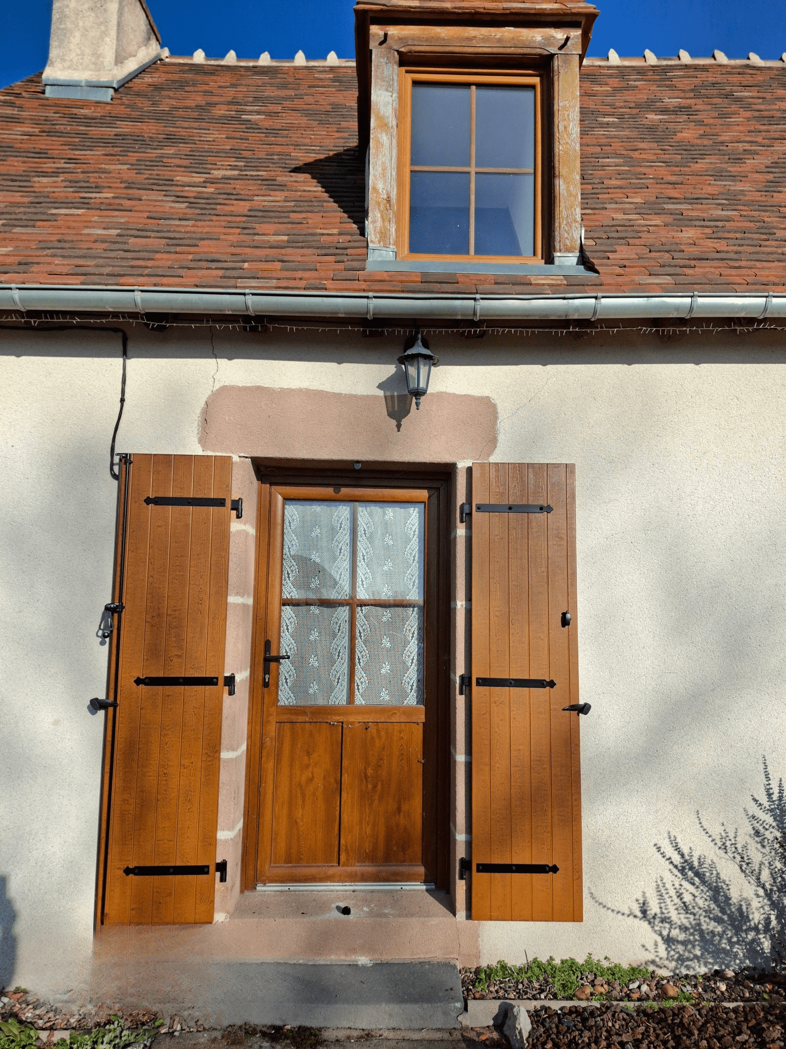 Dans cette maison typique de l’Allier, nous avons eu le plaisir d’installer des volets battants composites imitation bois, conjuguant l’esthétique du bois traditionnel à la performance d’un matériau moderne et sans entretien.